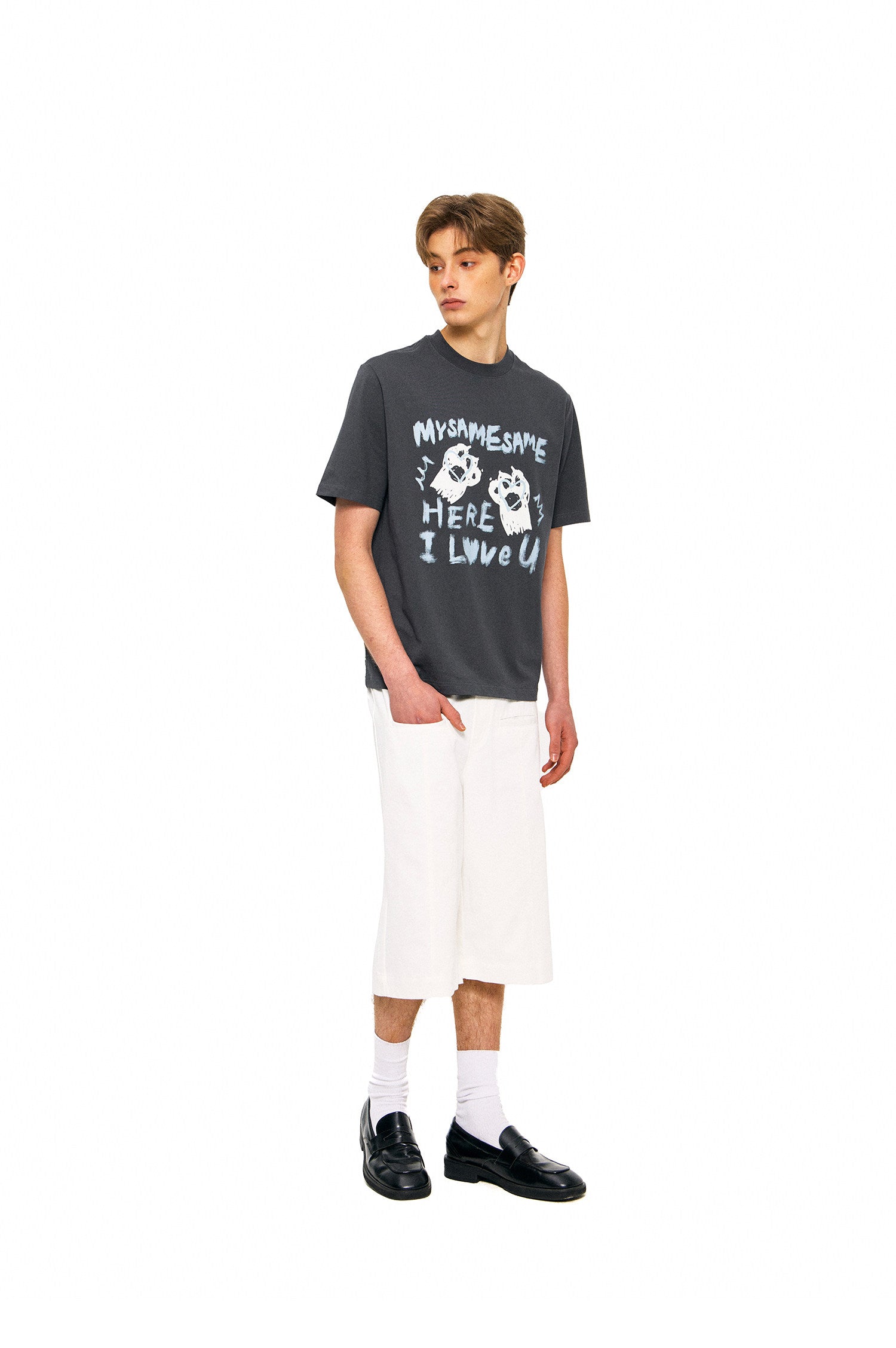 SAMESAME Graffiti Letter Print T-shirt - Dark Gray