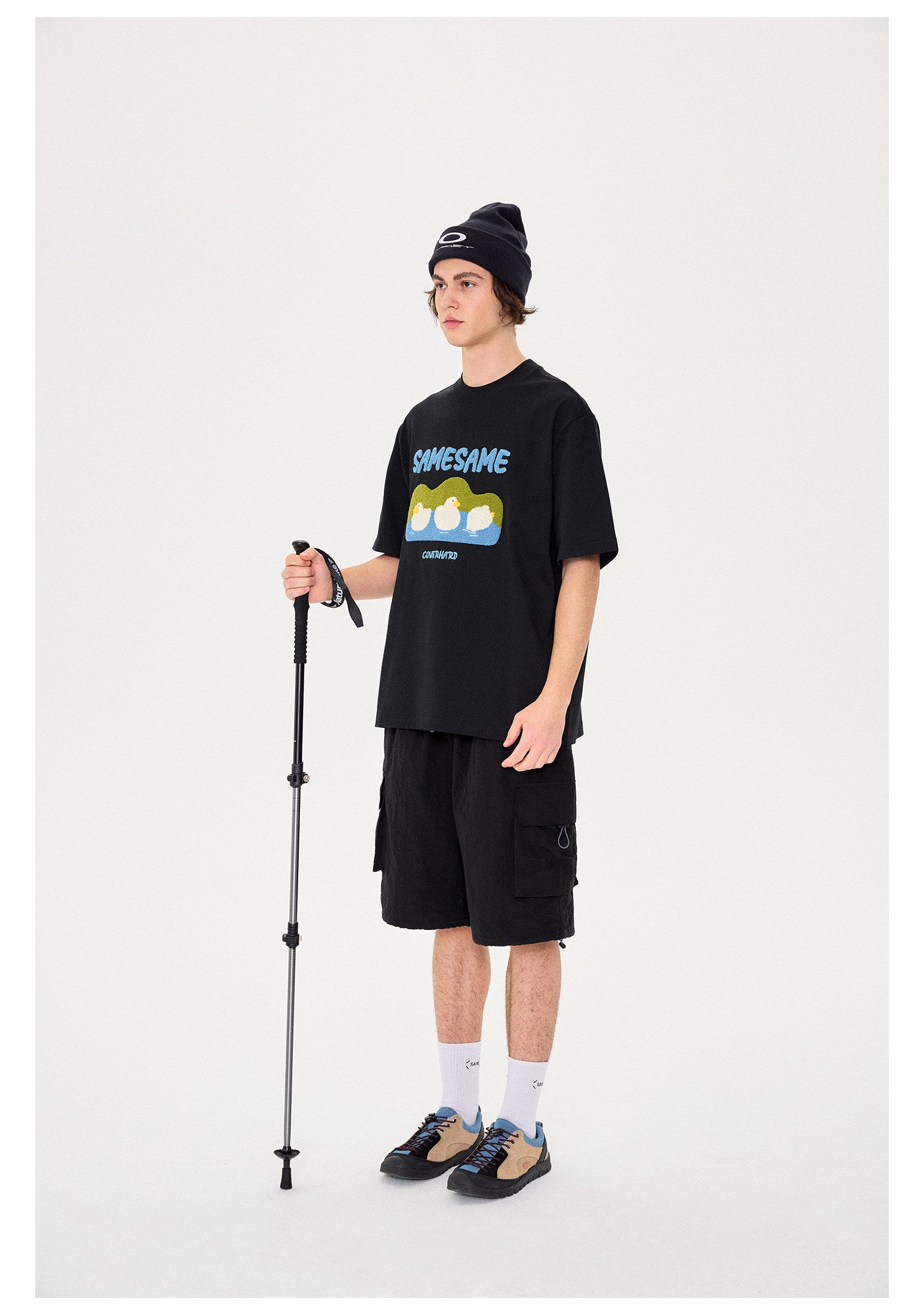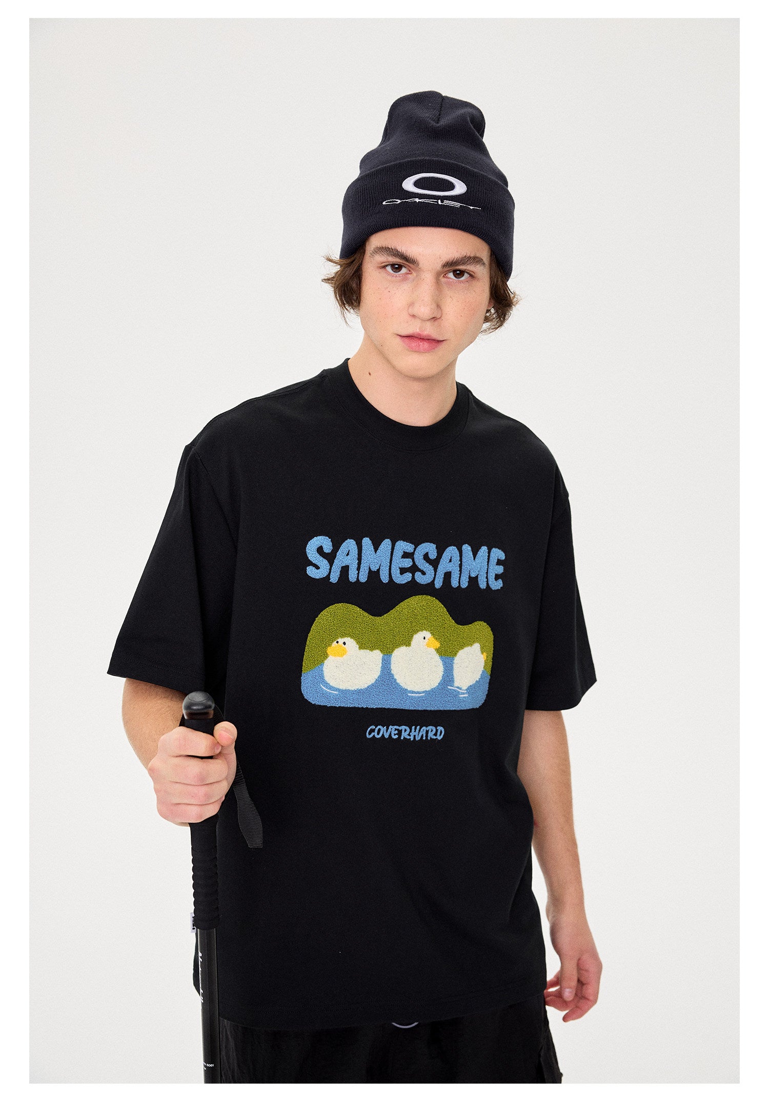 SAMESAME Logo Duck Embroidery T-shirt - Black