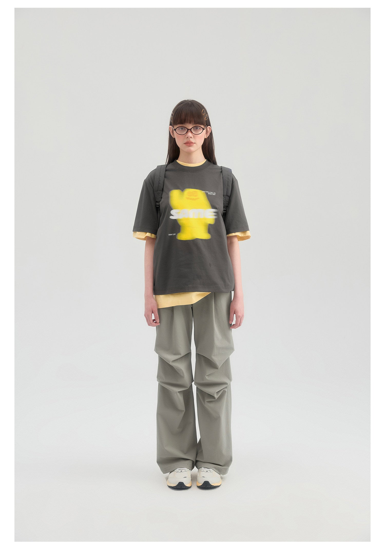 SAMESAME Logo Print Casual Graphic Tee - Dark Gray
